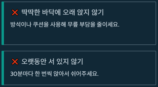 - 딱딱한 바닥에 오래 앉지 않기