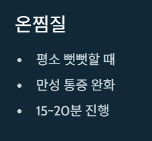 따뜻한 찜질을 하면 피가 잘 통해 통증이 줄어요.